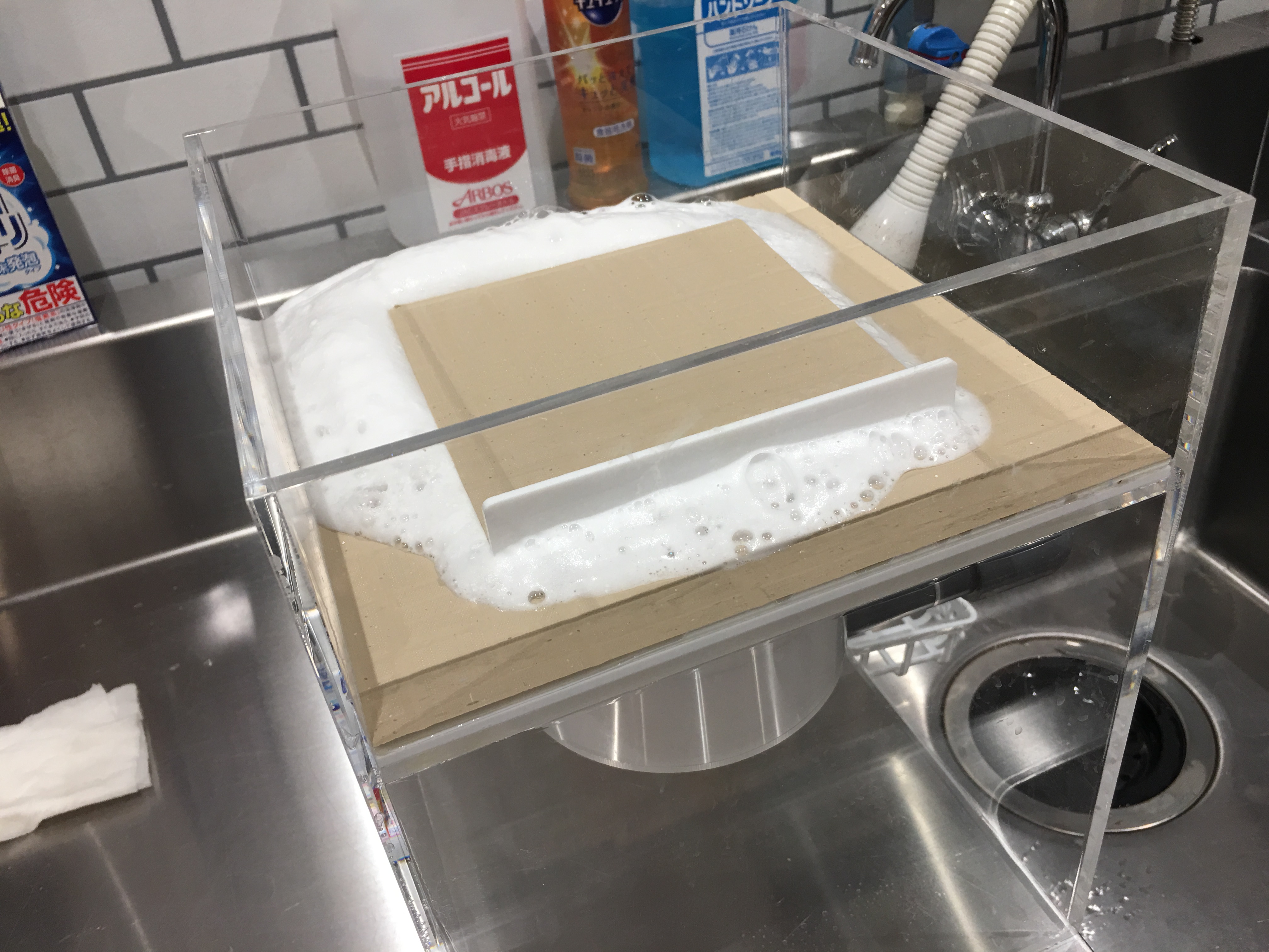 すごい量の泡がたちはじめました!!フタも持ち上げるほどの泡~Σ(・ω・ノ)ノ! みんなビックリです