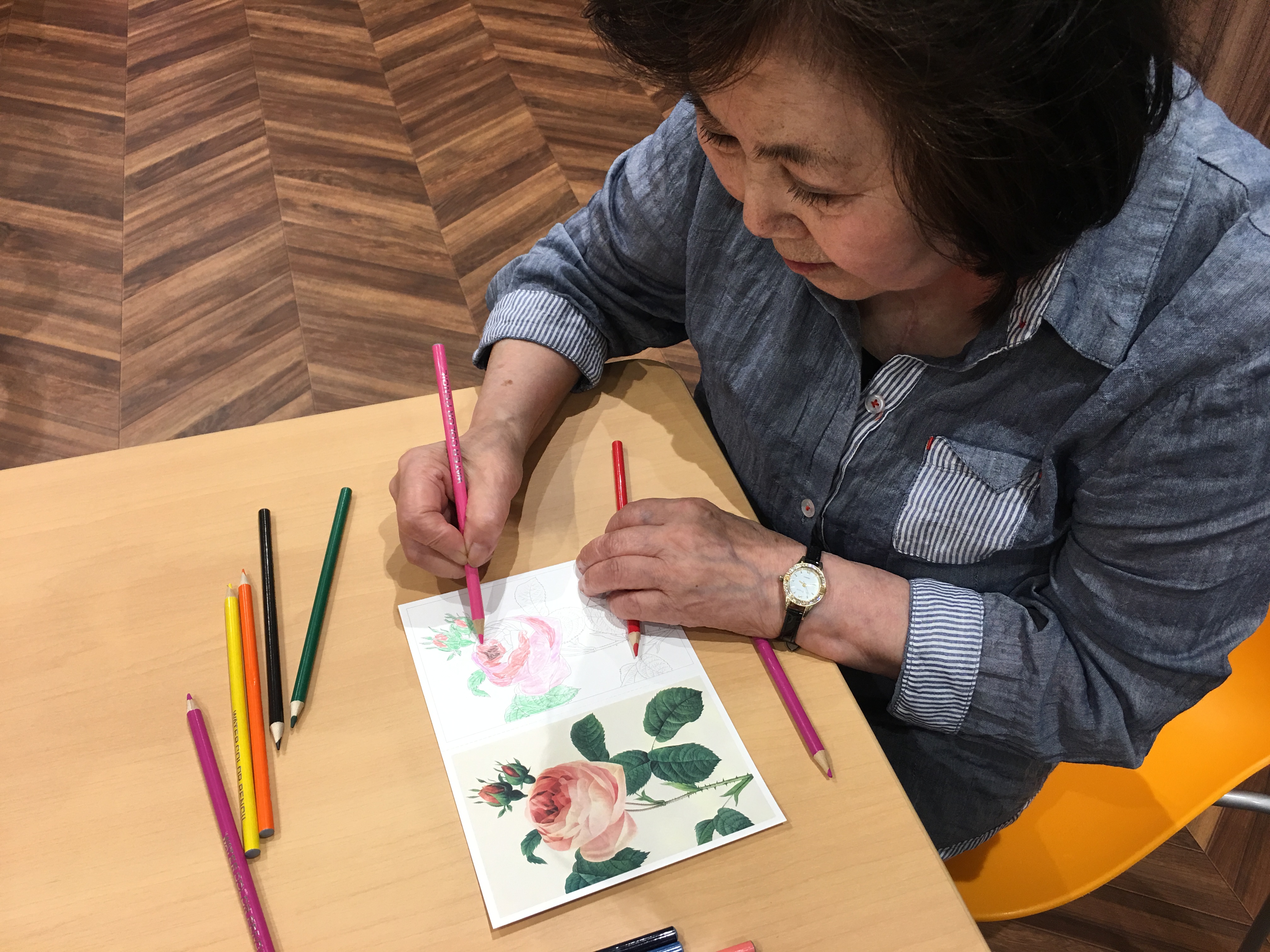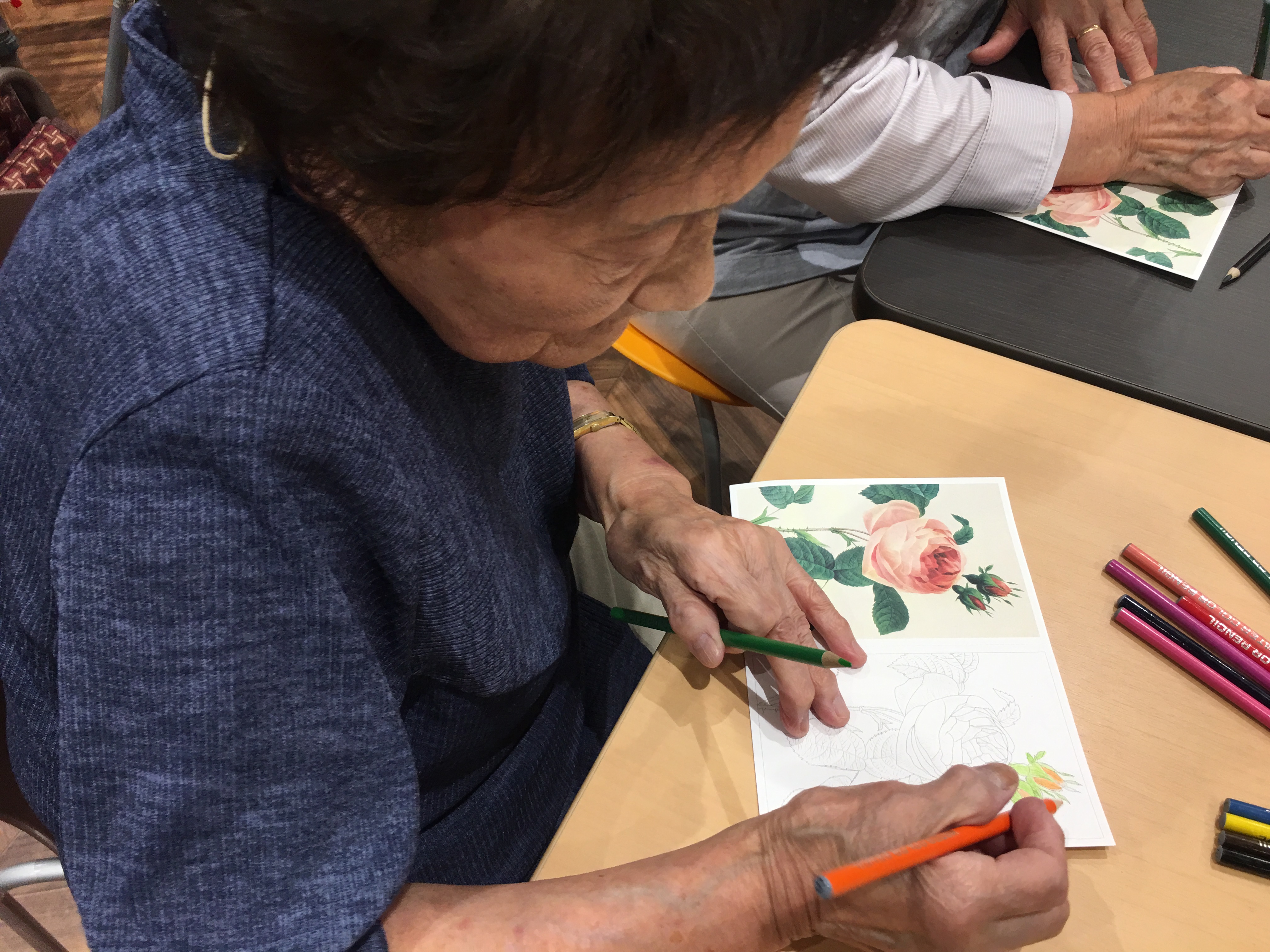 「懐かしいわぁ~」「あら~〇〇さん上手だわ」塗り絵をしながら会話も弾みます